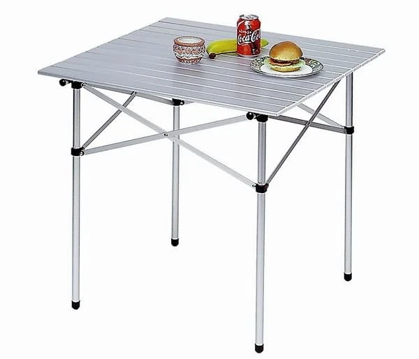Extrem leicht und klein verpackt. Gestell aus lackiertem Alurohr. Scherenartig zusammenklappbar. Tischplatte aus formschönen Aluminium Lamellen zusammenrollbar. Optimal für den mobilen Camper. In handlicher Tasche verpackt. Die Rollplatte gibt es in 2 Ausführungen – Alu und Alu silber.