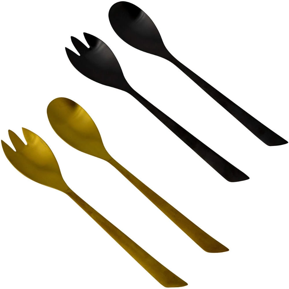 Dieses elegante Salatbesteck im Industrie-Look ist auf jedem Tisch ein echter Hingucker. Das zweiteilige Set aus Edelstahl ist hochwertig verarbeitet und spülmaschinenfest. Perfekt beim Camping, zu Hause oder im Garten.