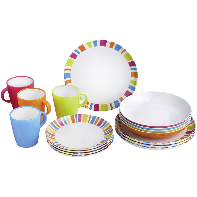 Das Geschirrset Spectrum ist besonders hochwertig und kann in vielen Variationen kombiniert werden. Die Linie kommt in fröhlichen sommerlichen Farben. Das Service wurde aus 100 % Melamin gefertigt. Alle Teile sind mit Anti-Slip-System ausgestattet.