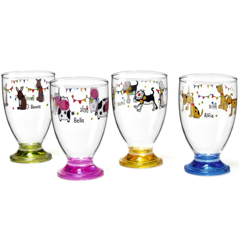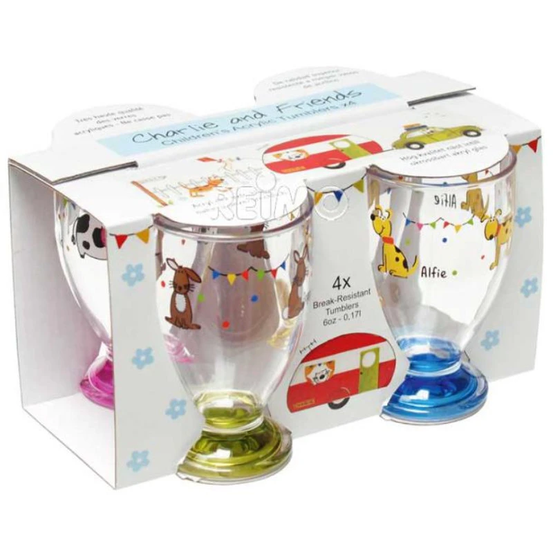 Gläserset mit vier verschiedenen Motiven und Farben. Dadurch gut unterscheidbar und die Gläser werden nicht mehr vertauscht. Aus hochwertigem Acrylglas gefertigt, das nahezu unzerbrechlich ist und damit ideal für die Kleinen.
