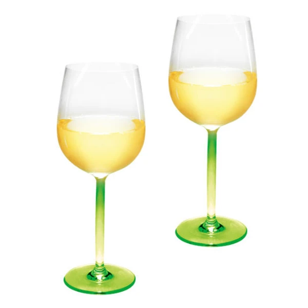 Weingläser mit grünem Stiel für stilvollen Genuss.