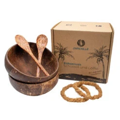 - Nachhaltiges Naturprodukt: Das Set enthält jeweils zwei Kokosnussschalen, Löffel und Schüsselhalter. Die Schalen bestehen aus recycelten Kokosnüssen, die in der Kokosmilchindustrie übrigbleiben, die Löffel aus dem Stamm der Kokospalme und die Halteringe aus Kokosfaser. Ein echtes Naturprodukt aus 100 % Kokosnuss – lebensmittelecht, geschmacksneutral, vegan und recycelbar.