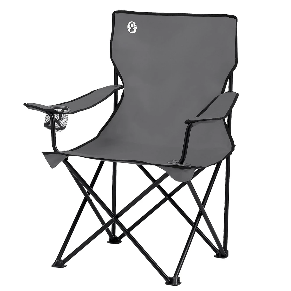 Leichter Campingstuhl mit verstellbarer Armhöhe, integriertem Getränkehalter und einer Belastbarkeit bis 113 kg. Inkl. Tragetasche.