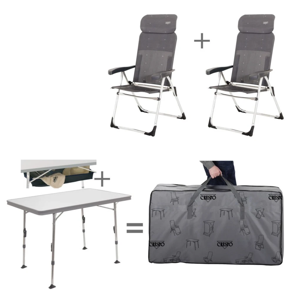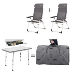 Das Crespo Stuhl- und Tischset Valencia gibt es in zwei Ausführungen. Das Set wurde speziell für kleinere Wohnmobile, Kastenwagen und Vans konzipiert.