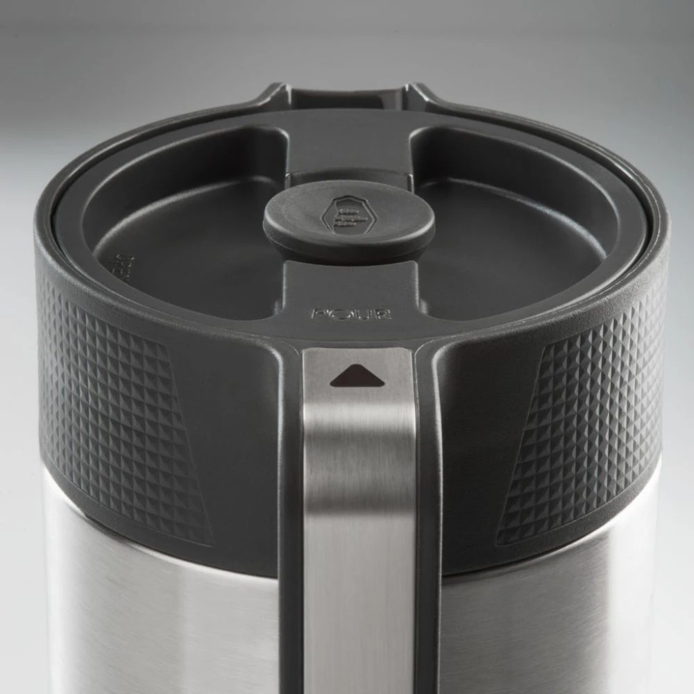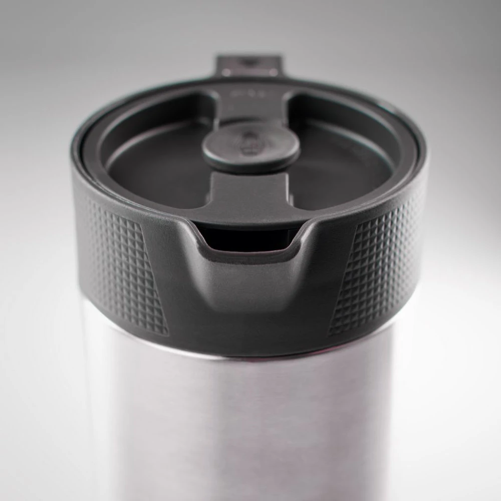 Die vakuumisolierte, doppelwandige JavaPress bietet 6-stündiges Warmhalten des Kaffees. Die JavaPress ist mit einem rutschfestem Fuß sowie mit einem stabil geformten Griff ausgestattet. Gefertigt aus hochwertigem, doppelwandigem Edelstahl. Die Presse besitzt eine Dichtung aus Silikon, sodass wirklich keine Partikel vom Aufbrühen in das Getränk gelangen können. Eine Kombination für jahrelangen zuverlässigen Kaffeegenuss im Freien.