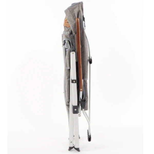 Dank sehr kleinem Packmaß der ideale Campingstuhl für kleine Camper. Der grau-melierte Stoff mit Leder-Etikett und braunen Armlehnen aus Holz verleihen dem Faltstuhl aus der Holiday Travel-Serie ein exklusives Design. Die Lieferung erfolgt inklusive praktischer Tragetasche.