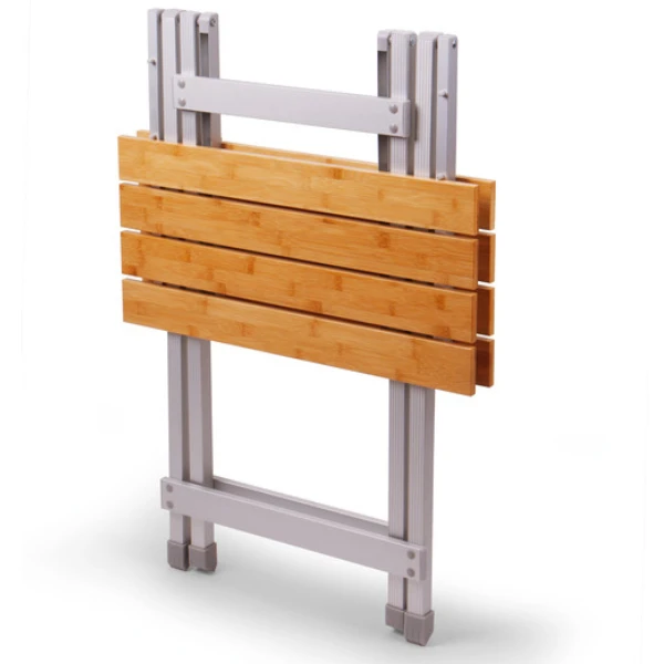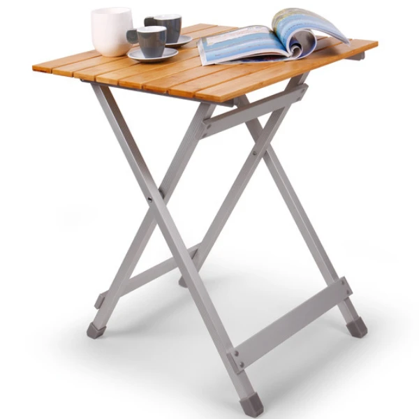 Edler Klapptisch mit Bambus-Tischplatte. Leichtes Aluminiumgestell.