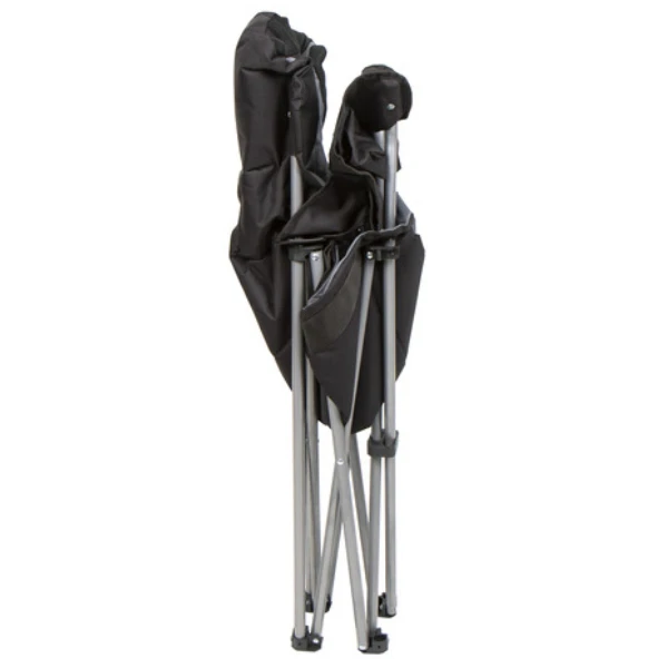 Durch das silberne Stahl-Gestell und das hochwertige 600D Polyster-Material in schwarz/grau wird dieser Faltstuhl zum unentbehrlichen Campingstuhl für alle Gelegenheiten.