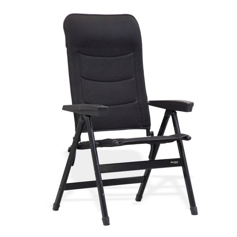 Äußerst stabiler, kompakter und robuster Stuhl mit einer niedrigen Sitzhöhe von 45 cm, um auch für kleinere Leute einen optimalen Sitzkomfort zu erreichen. Hergestellt mit verstärkten DuraLite-Rahmen, Aluminiumscharnieren und metallverstärkten Armlehnen.